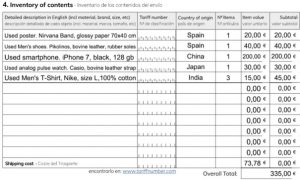 - Faites un inventaire complet et précis des articles envoyés, avec une description détaillée en anglais. Incluez :